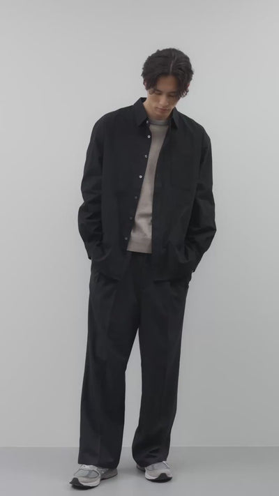 Cotton×Nylon Wide Straight Easy Slacks -charcoal-