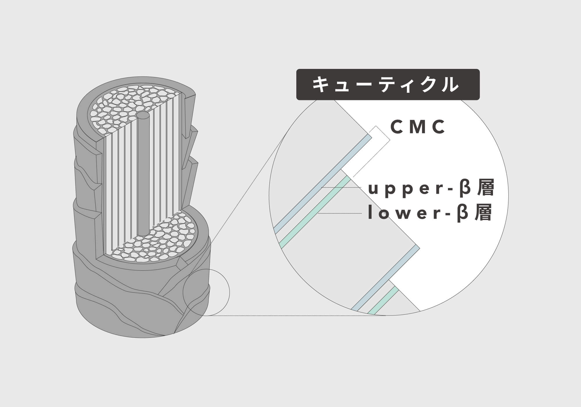 キューティクルを繋いでいるCMCのβ層を補修し、髪の弾力を向上させます。ぺタッとしがちな髪にハリコシを与え、スタイリングしやすい髪へ導きます。